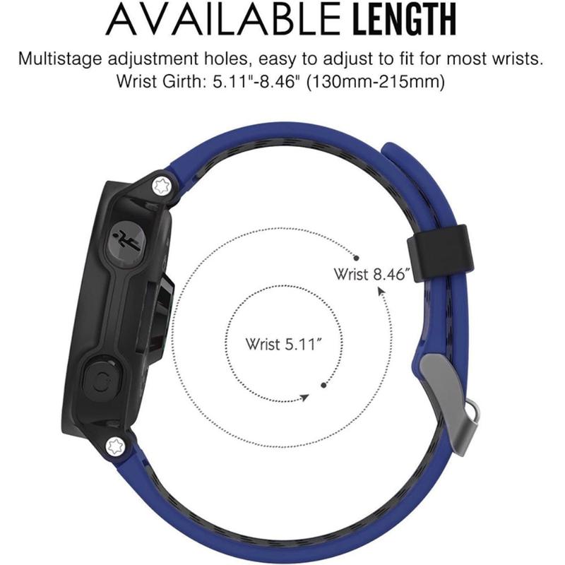Reim er laget av mykt, fleksibelt, hudvennlig silikon, og det er behagelig å ha på deg hele dagen. Den tofargede designen til denne silikonremmen vil definitivt gjøre at din Garmin Forerunner 220/230/235/630/620/735 skiller seg ut.