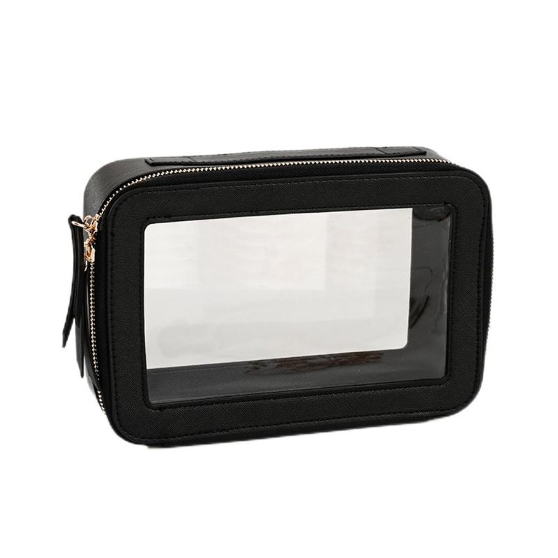 Gjennomsiktig sminkeveske i ett lag, vanntett kosmetikkveske i PU-lær - Svart