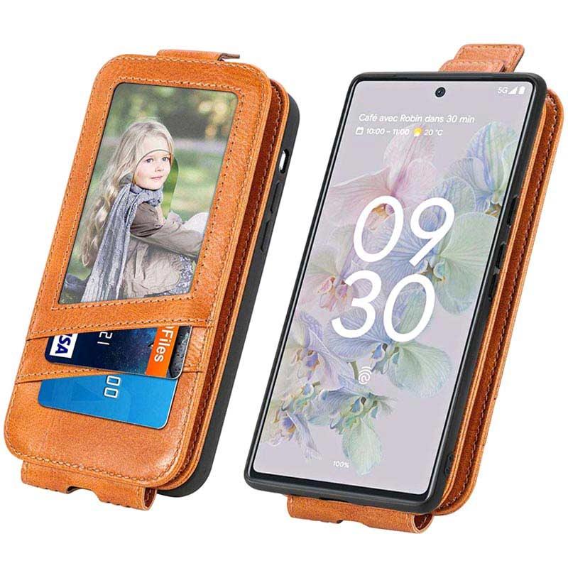 - Stilig vertikalt flip-deksel med glidelåslomme til Google Pixel 6a