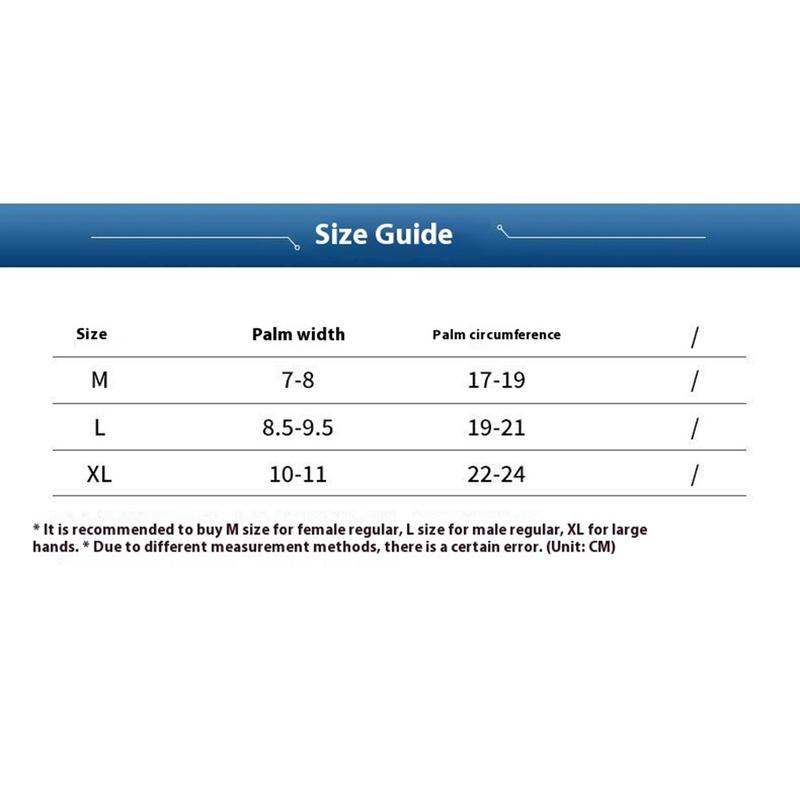 - XL: Håndflatebredde: 10-11 cm, håndflateomkrets: 22-24 cm