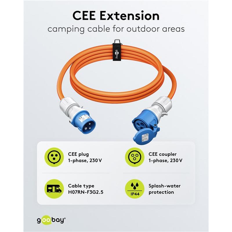 Goobay CEE-forlengelseskabel for camping - CEE-kontakt til CEE-kobling - 5m, 16A, 3680W