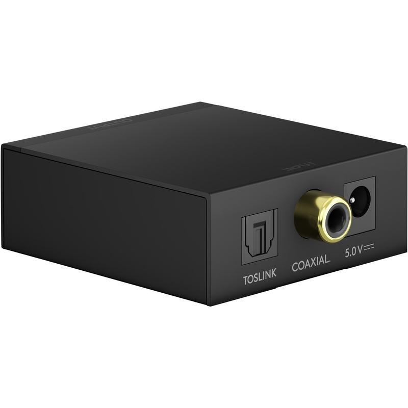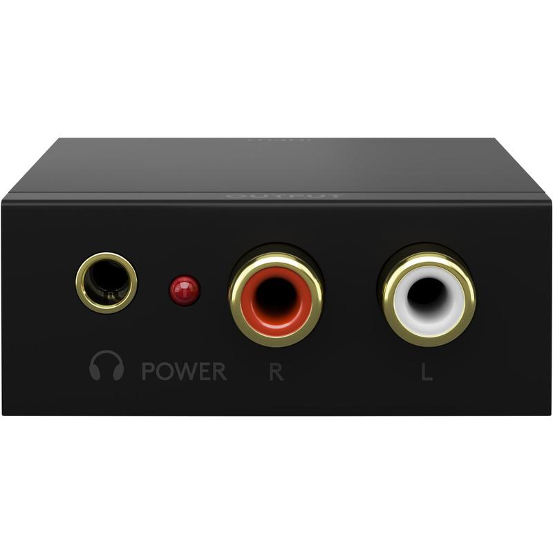 - Konverterer TOSLINK- eller koaksial S/PDIF-lyd til analog venstre/høyre RCA eller 3,5 mm stereo - uten behov for ekstra bokser.