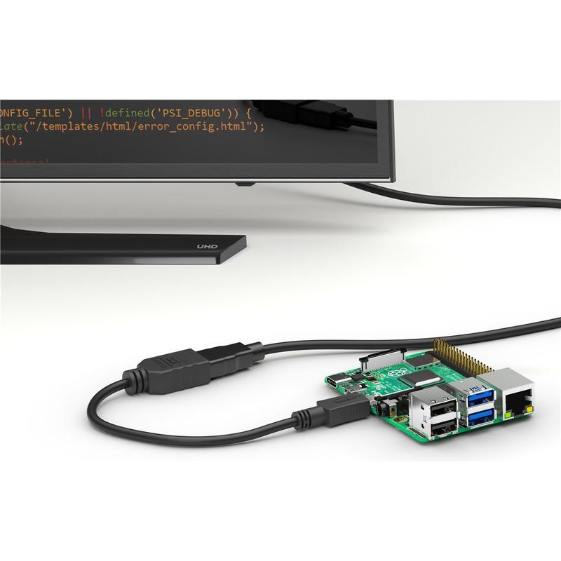 Fleksibel og bøybar kort forlengelse for anslutning som er vanskelig å komme åt, t.ex. på baksiden av TV:n, HDMI™-adapteren er optimalt integrert mellom enheten og tilkoblingskabelen for en stabil anslutning og høy komfort. Forlenger og HDMI™-kabel og er egnet for tilkoblingsenheter med HDMI™-kontakt (Micro), t.ex. Raspberry Pi, GoPro-rom, surfeplater og for overføring fra bærbar datamaskin til TV. Signaloverføring med høy oppløsning med opp til 4K @ 60 Hz (2160p), Micro-HDMI™-adapterkabel for alle vanlige funksjoner som ARC, Ethernet-kanal (HEC) og 3D-innhold, Guldpläterte HDMI™-kontakter og avansert teknikk garanterer feilfri signaloverføring, klart lyd og skarp video- og bildekvalitet.