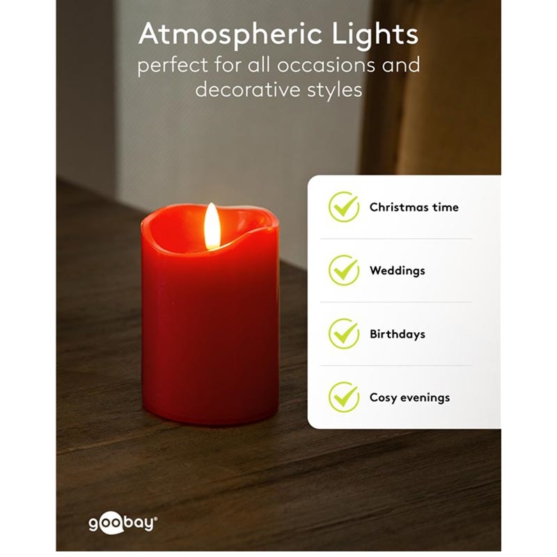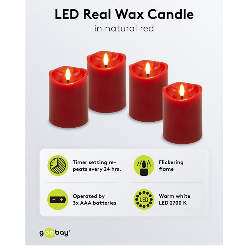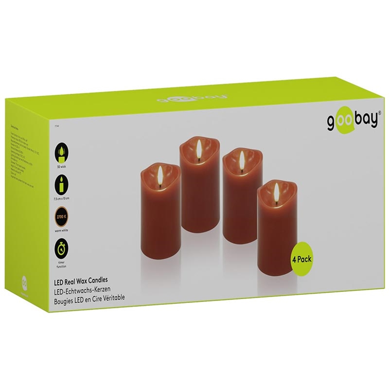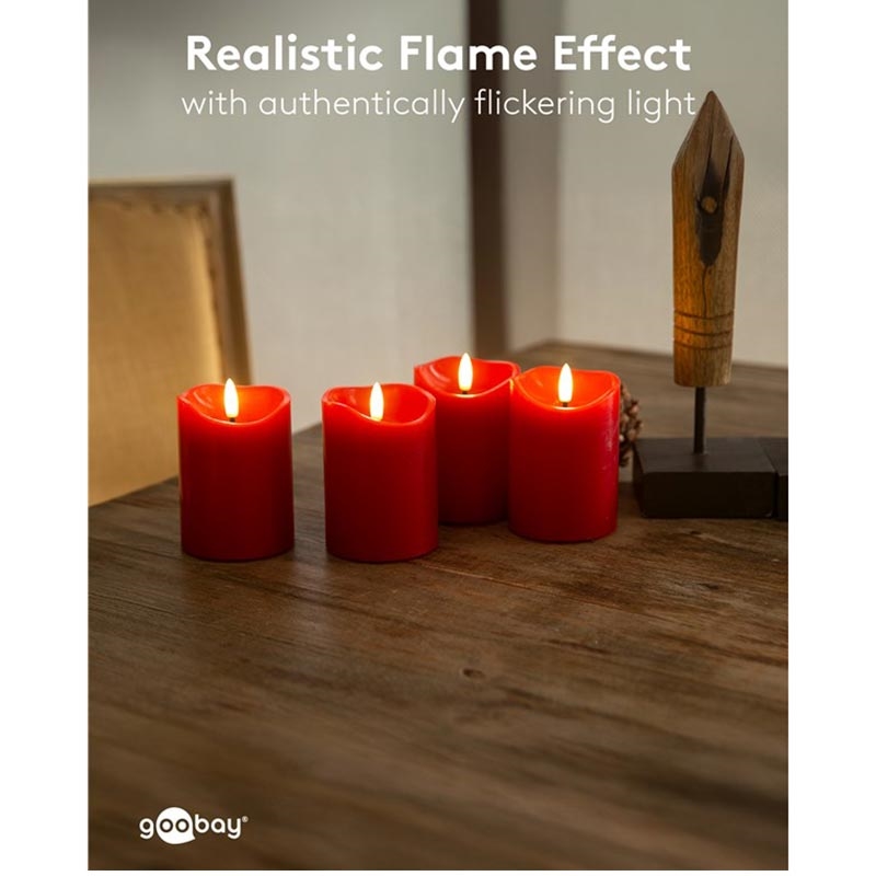 Goobay LED ekte vokslys - 3D-flamme, timerfunksjon, varm hvit 2700 K, batteridrevet