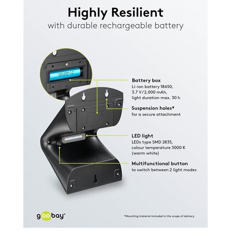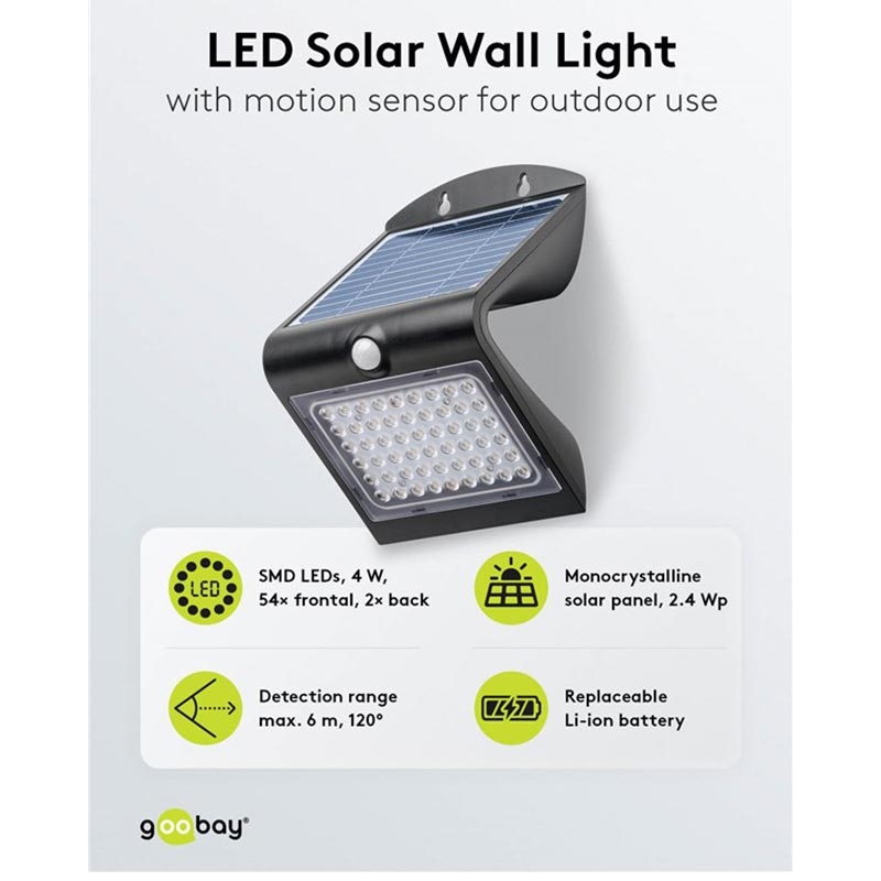 Goobay LED solcellelampe 4W med PIR-bevegelsessensor - IP65 vanntett utendørs solcellelampe (500 lm, 4000K) - utskiftbart batteri