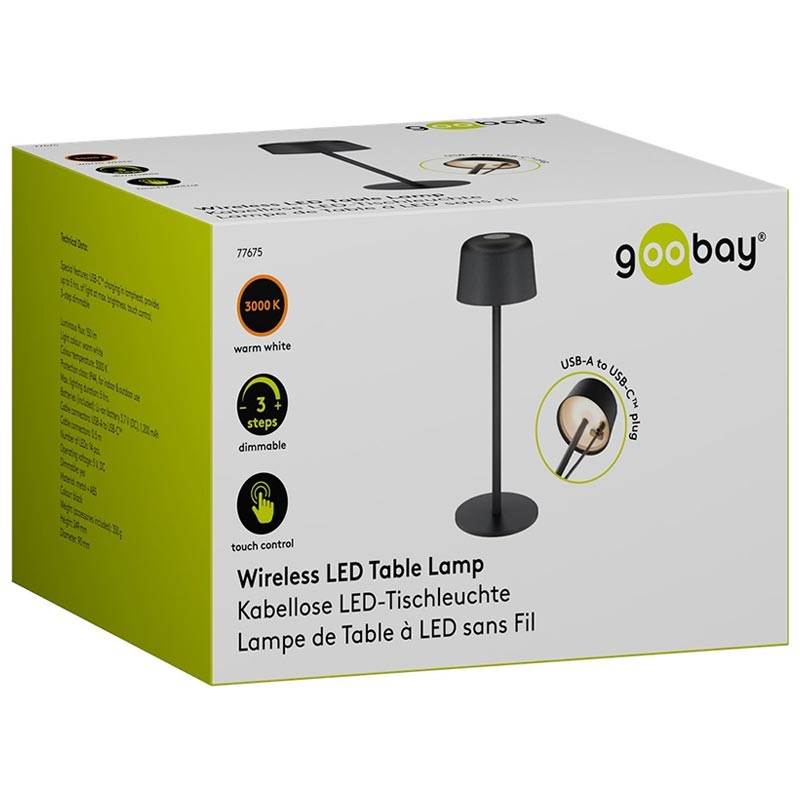 Goobay trådløs LED-bordlampe - størrelse S (25 cm), berøringskontroll, varmhvit 3000 K, 150 lm, USB-C-oppladbar, IP44