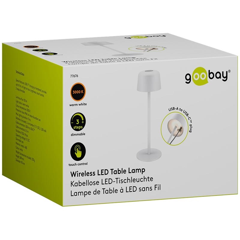 Goobay trådløs LED-bordlampe - størrelse S (25 cm), berøringskontroll, varmhvit 3000 K, 150 lm, USB-C-oppladbar, IP44