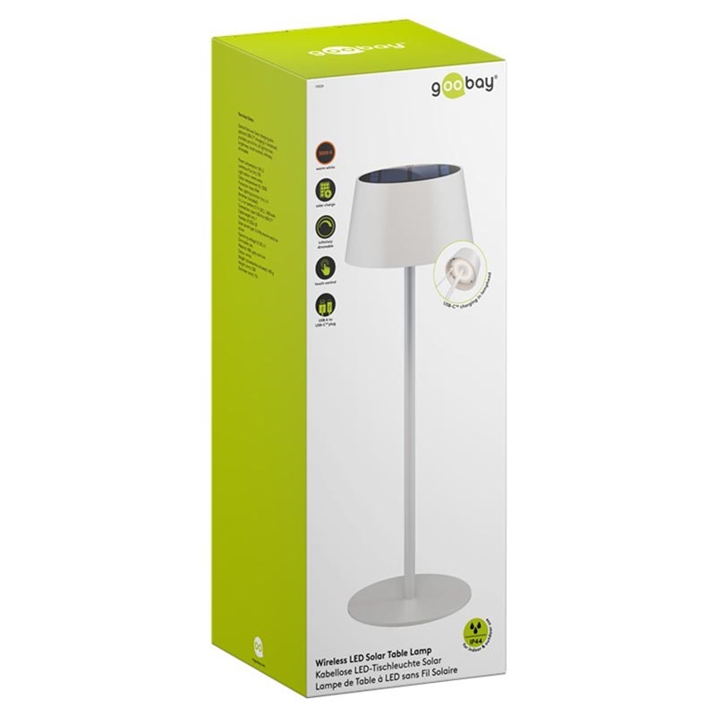 Goobay trådløs LED-solcellelampe - varmhvit 3000 K, 150 lm, berøringskontroll, trinnløs dimbar, solcelle + USB-C-lading, IP44