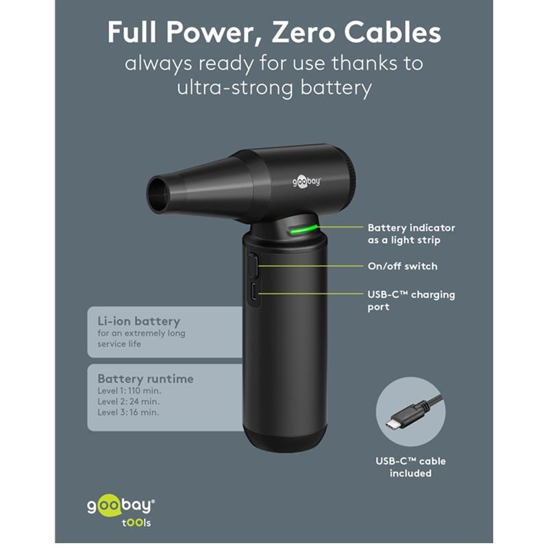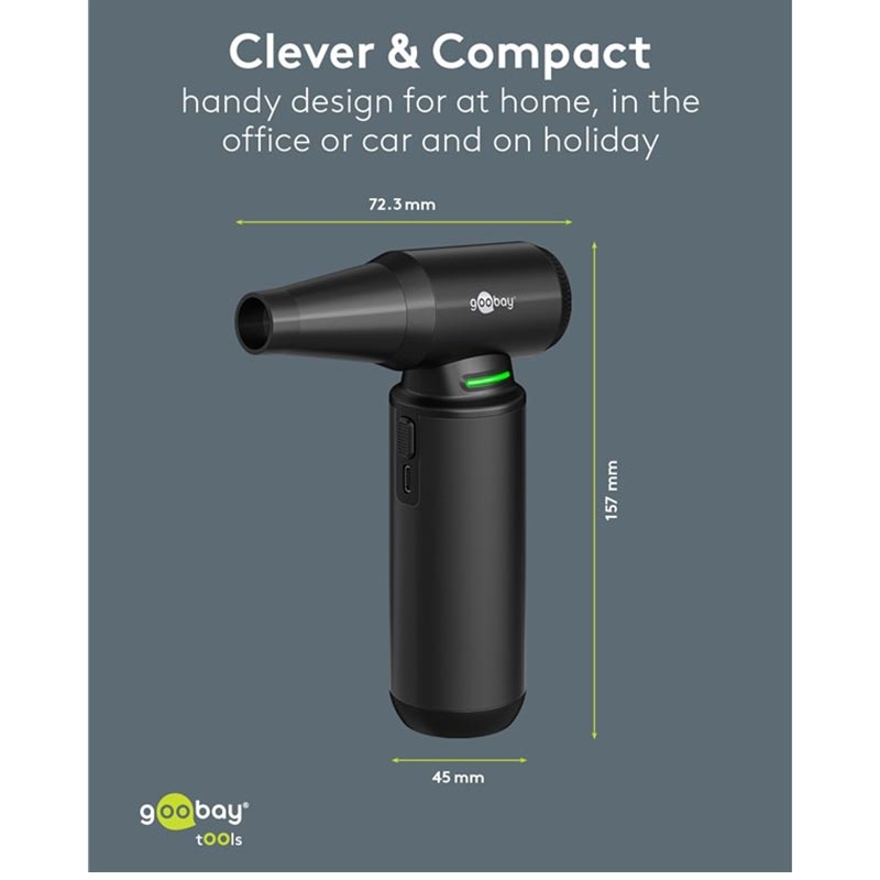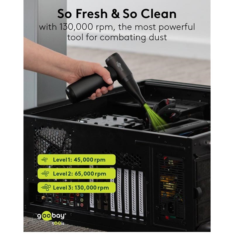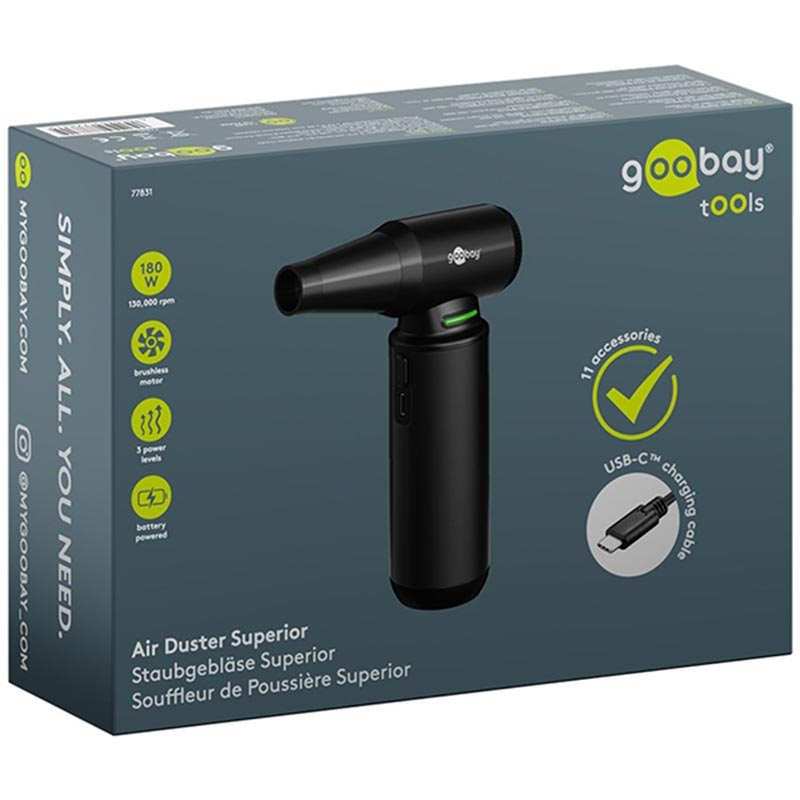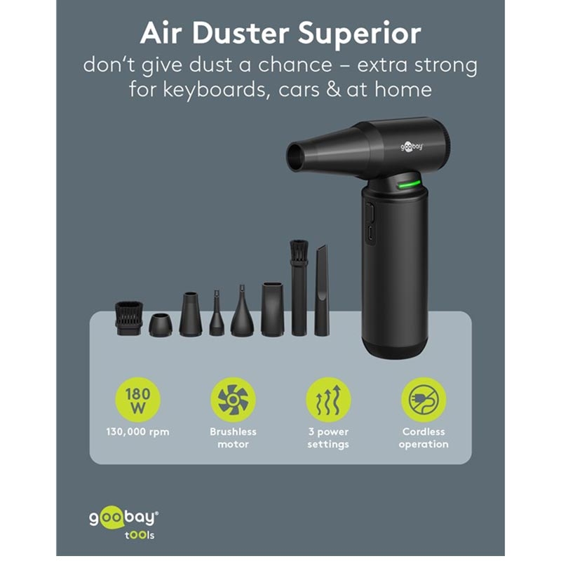 Goobay luftstøvsuger Superior - 130000 o / min trådløs elektrisk luftblåser med 8 dyser og 3 børster (180 W, aluminiumsdesign)