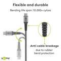 - Fleksibilitet: Fleksibel kabel som ikke lett knekker eller blir skadet ved daglig bruk.