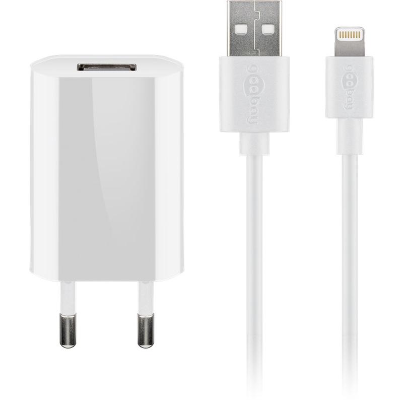 Goobay USB-lader med lynkabel - MFi-sertifisert, EU-kontakt