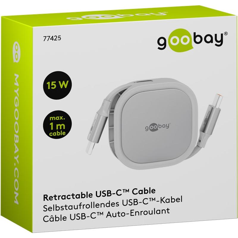 Goobay uttrekkbar USB-C-kabel - 1m flat ladekabel med 15W effekt og automatisk uttrekksmekanisme