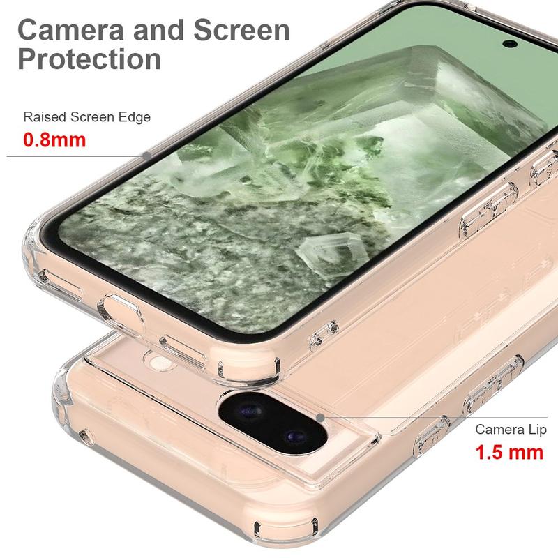 Dette tilbehøret bruker en kombinasjon av akryl og TPU for å holde smarttelefonen i best mulig stand. Samtidig ser forsterkede, støtabsorberende hjørner for å forhindre fallskader, mens den gjennomskinnelige designen viser den vakre utformingen av Google Pixel 8a.