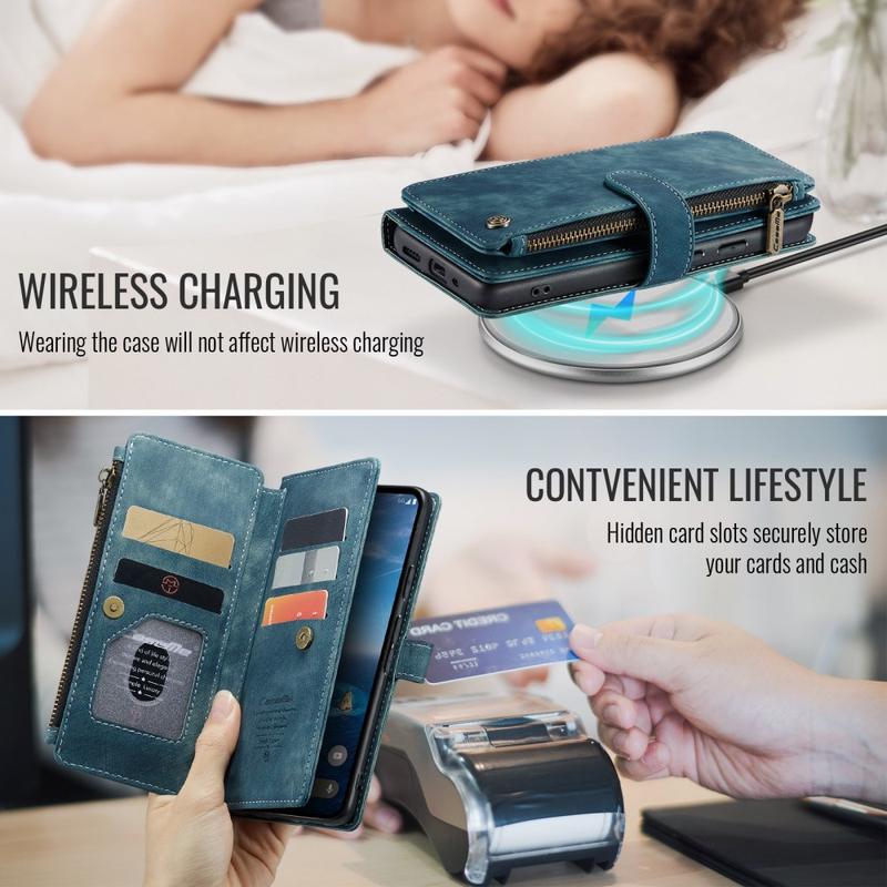 Caseme C30 multifunksjonelle lommebokdeksel for Google Pixel 9, Pixel 9 Pro gir eksepsjonell allsidig beskyttelse og et eksklusivt, raffinert design. Dette elegante dekselet er laget av førsteklasses polyuretan, forsterket med et støtbestandig TPU-innerdeksel som omslutter Google Pixel 9, Pixel 9 Pro perfekt. I tillegg er Caseme C30 lommebokdekselet forbedret med mange kortspor, en stort pengelomme inni og en utvendig glidelåslomme, alt beskyttet av en sikker magnetisk lukking.