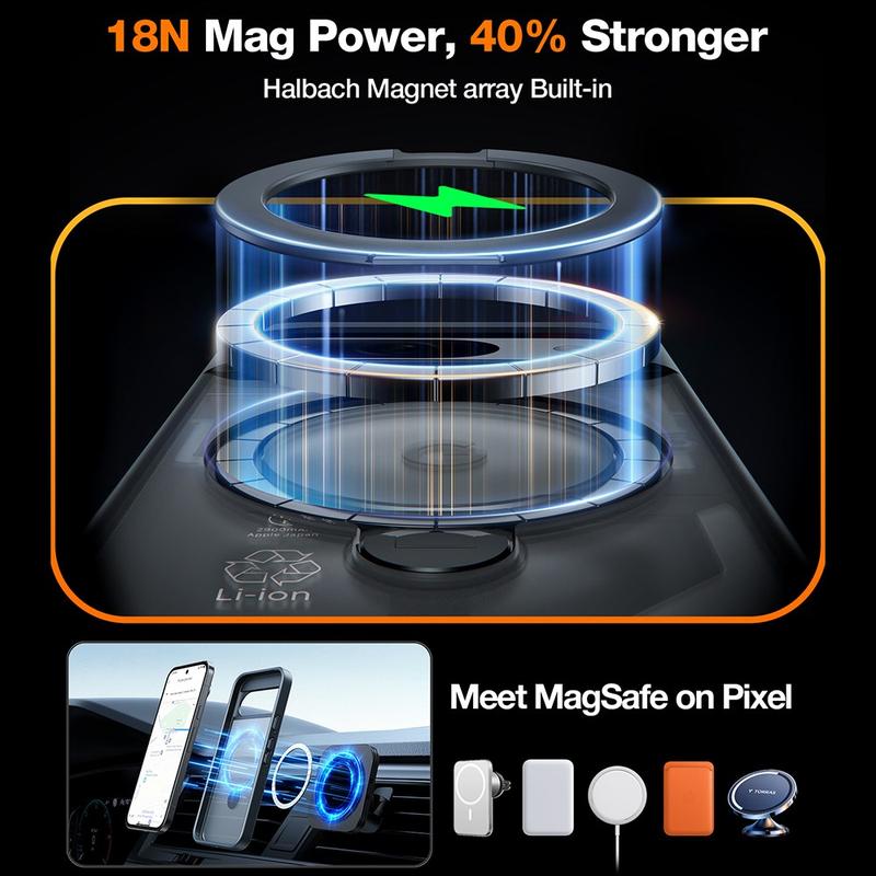 - Praktisk MagSafe-lading: Lad Google Pixel 9, Pixel 9 Pro uten problemer med MagSafe-ladere, eller fest MagSafe-tilbehør som lommebøker og bilholdere.