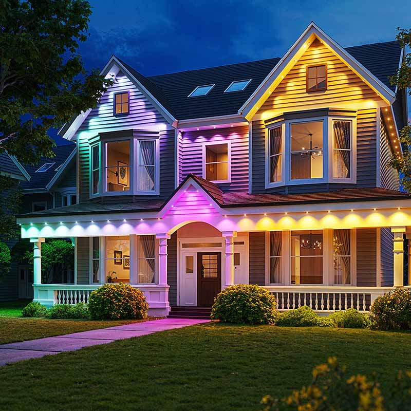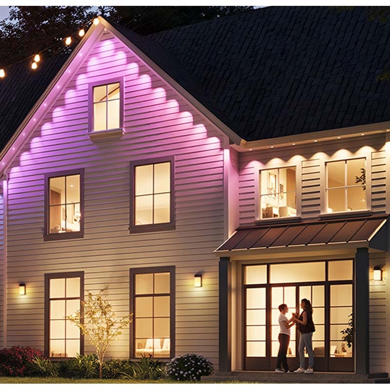 Govee Permanent Outdoor Lights 2 gir en profesjonell belysningsoppgradering for ethvert hjem utvendig. I motsetning til midlertidige lyskæder, gir dette systemet kraftig lysstyrke, avansert værbestandighet og svært tilpassbare smartkontroller. RGBICW-teknologien gir detaljerte lyseffekter i flere farger som tradisjonelle LED-strips ikke kan oppnå. Med lang holdbarhet, AI-lysshow og sømløs app- eller stemmestyring er dette en investering som forbedrer fasaden og løfter enhver feiring.