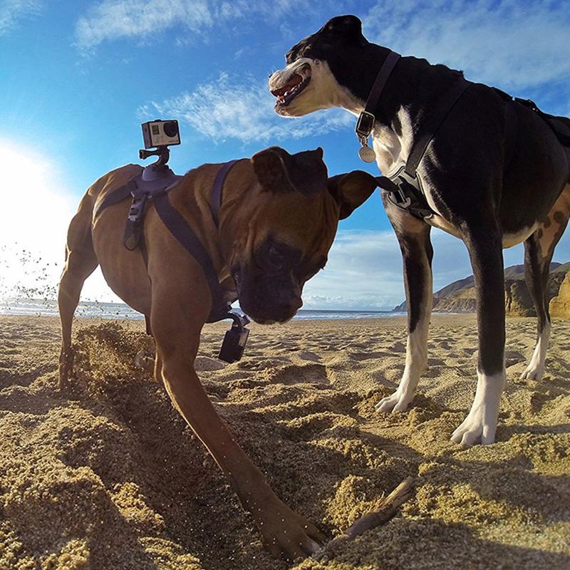 Designet med to monteringsposisjoner for å passe til forskjellige aktiviteter: Brystmontering: ideell for å tygge på bein, grave, snuse og bevegelser med forpotene. Ryggmontering: perfekt for løping, hopping, apport og actionbilder i hodehøyde. Bytt enkelt mellom posisjonene for å passe til hundens aktivitet.