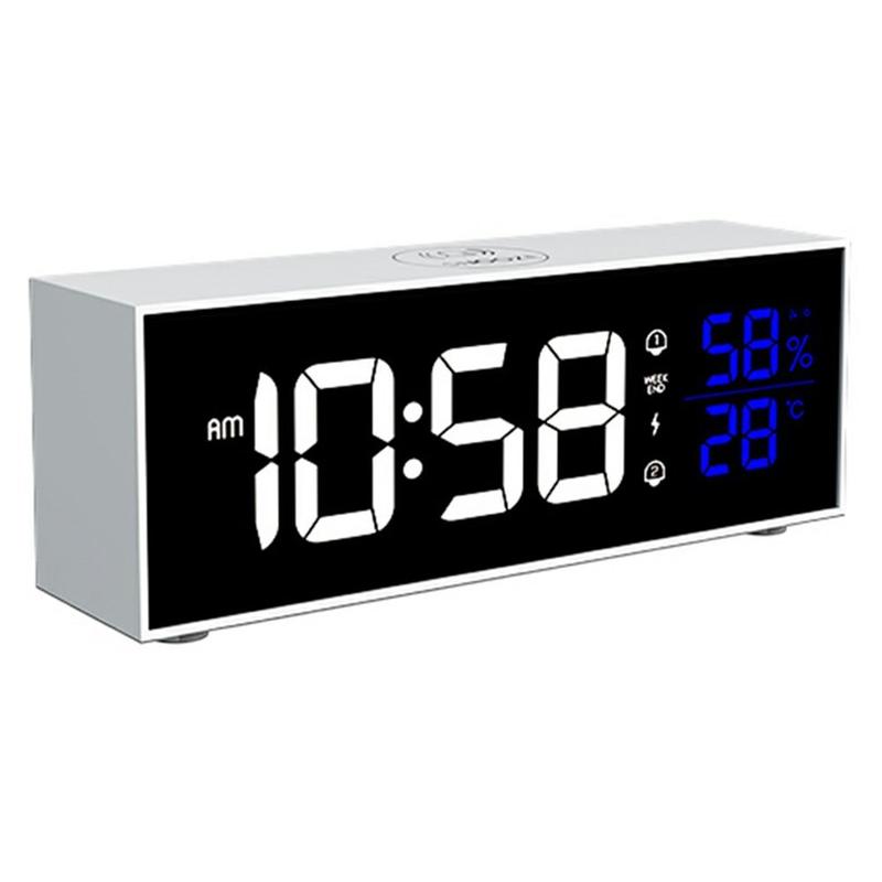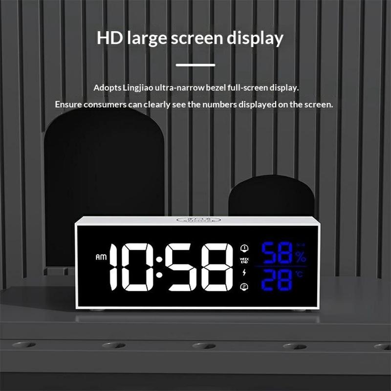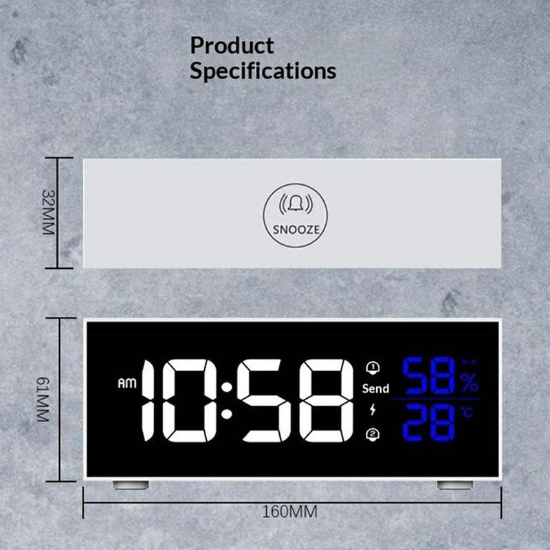 GS-8812 multifunksjonell musikkvekkerklokke kombinerer en elegant LED-skjerm i speilstil med praktiske hverdagsfunksjoner som dobbel alarm, justerbar lysstyrke og volum, samt overvåking av innetemperatur og luftfuktighet i sanntid. Den er designet for soverom, kontorer og studentrom, og tilbyr 16 musikalske ringetoner for en mer behagelig oppvåkning, stemmestyring for enkel betjening og en lydløs smartbrikke som fjerner irriterende tikking. Med et innebygd 2200 mAh oppladbart batteri og minnefunksjon er den pålitelig både når den er koblet til strøm og når du er på farten.