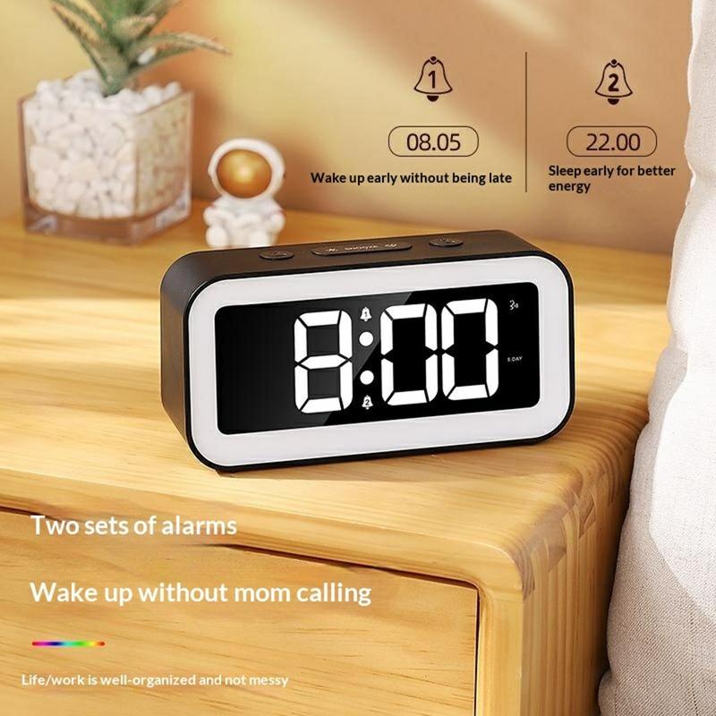 GS202-2 RGB LED digital vekkerklokke – dynamisk fargeskjerm, nattlys, dobbel alarm og dobbel lysstyrkekontroll