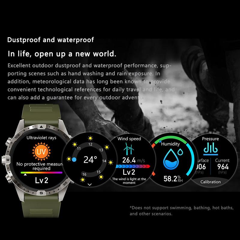 Med Bluetooth-telefonsamtaler, aktivering av stemmeassistent, stressmåling, søvnanalyse og over 100 sportsmoduser tilbyr denne smartklokken et komplett økosystem for helse, trening, produktivitet og utendørsberedskap.
