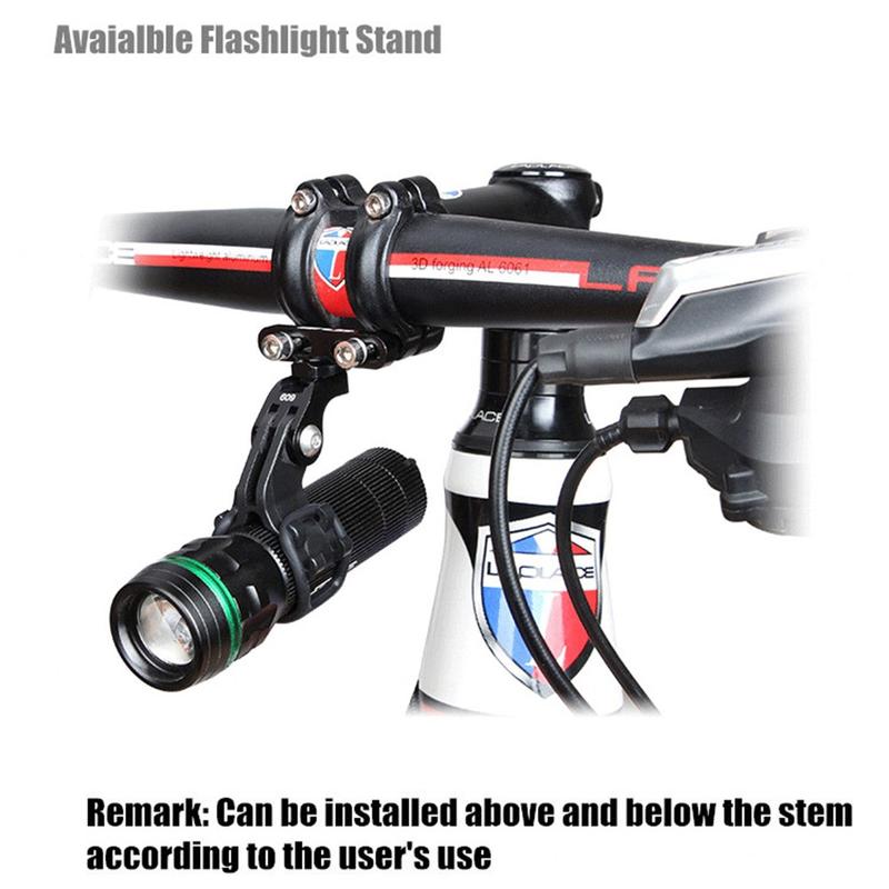 Kan monteres på toppen og bunnen av sykkelstyret, men det er bedre å montere den på bunnen av styret når den er utstyrt med stort tilbehør som f.eks. lommelykt