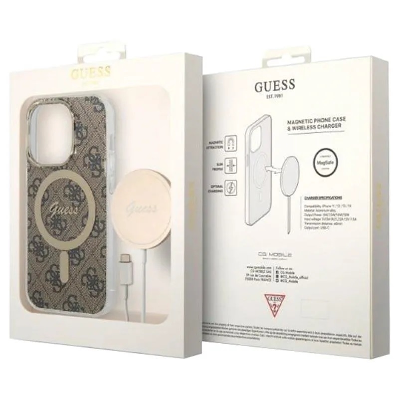 Guess 4G Edition Bundle Pack Hybrid-deksel & Magnetisk Trådløs Lader til iPhone 14 Pro Max - 20W
