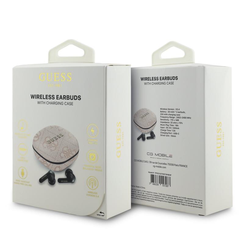 Guess 4G Script Logo ENC TWS Earphones tilbyr Guess' sofistikerte signaturdesign kombinert med avansert trådløs lydteknologi. Nyt krystallklar lyd, støyfrie samtaler og et uanstrengt stilig utseende i alle omgivelser.
