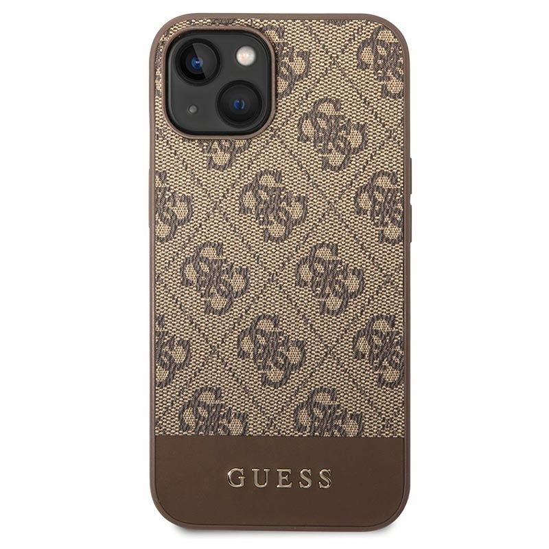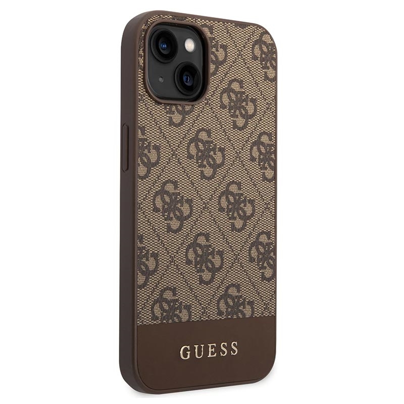 Guess 4G Stripe hybrid-deksel inneholder et elegant design som vil gjøre iPhone 14 Plus unik. Det er et lett gjenkjennelig hybrid-deksel med sin metall Guess-logo og luksuriøse skinntekstur med et 4G-mønster som beskytter iPhone 14 Plus tilstrekkelig mot hverdagslige riper og skader.