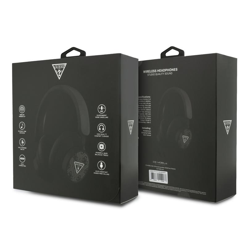 Guess 4G Triangle Logo ENC trådløse hodetelefoner kombinerer mote og avansert lydytelse i ett moderne headset. Med Guess' signaturdesign, komfortable øreputer og lyd av høy kvalitet er de perfekte for reiser, jobb, treningsøkter eller hverdagslytting.
