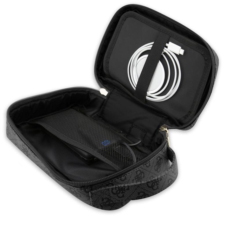 Guess Travel Universal-vesken er det ideelle reisefølge for alle som ønsker en stilig og praktisk måte å ta med seg alt tilbehøret til telefonen, nettbrettet eller den bærbare datamaskinen på. Vesken er laget av ECO-lær av høy kvalitet og har en fin strukturert overflate med den ikoniske Guess-logoen. Innvendig er det godt utformede lommer som gir god plass til ladere, powerbanks og strømkabler. Det spesielle med denne vesken er USB-A-utgangen, som gjør det mulig å koble til en powerbank og lade telefonen direkte fra siden av vesken. Med sitt stilrene design er denne vesken perfekt for reisende som setter pris på både funksjonalitet og mote.