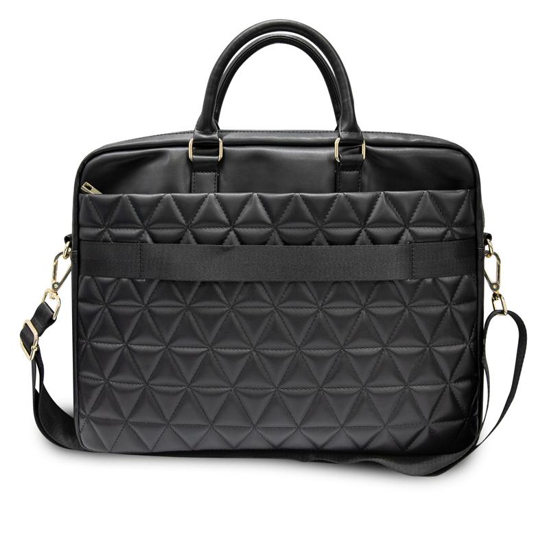 Guess Quilted Laptop Bag er den perfekte vesken for en 15-tommers bærbar PC. Denne luksuriøse vesken er laget av ECO-lær av høy kvalitet med strukturert overflate og sømmer av høy kvalitet, og har Guess-logoen i gull på forsiden. Den indre delen er forsterket med en myk innersåle som beskytter den bærbare PC-en mot overflateskader, smuss, riper og mindre fall. Vesken har et hovedrom for den bærbare PC-en, to håndtak og en avtakbar skulderrem som gjør den komfortabel å bære.