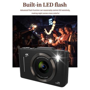 H16 Digital Camera er et lett og bærbart kamera som er designet for å ta HD-bilder og -videoer uten problemer. Kameraet er utstyrt med en 2,8-tommers IPS-skjerm, 16X zoom og avanserte funksjoner som antirystefunksjon og autofokus i sanntid, og er perfekt for både uformell og kreativ fotografering.
