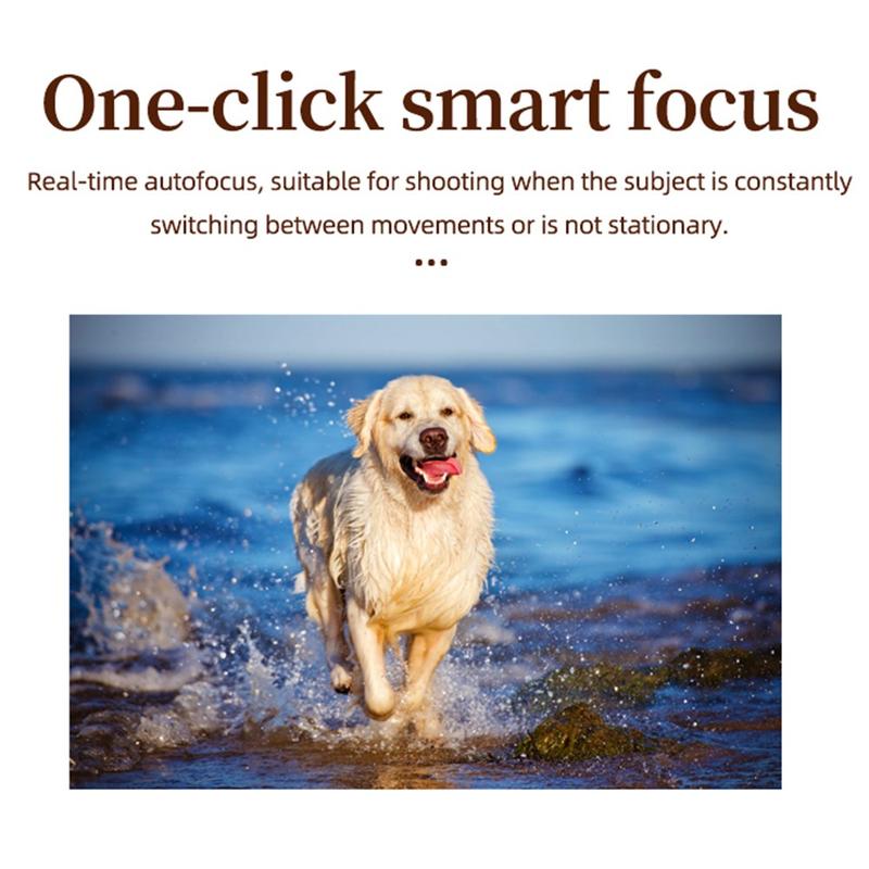 - Smart fokus med ett klikk: Autofokus i sanntid for jevn og nøyaktig fotografering, selv når motivet er i bevegelse.