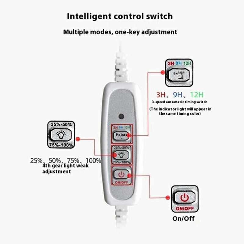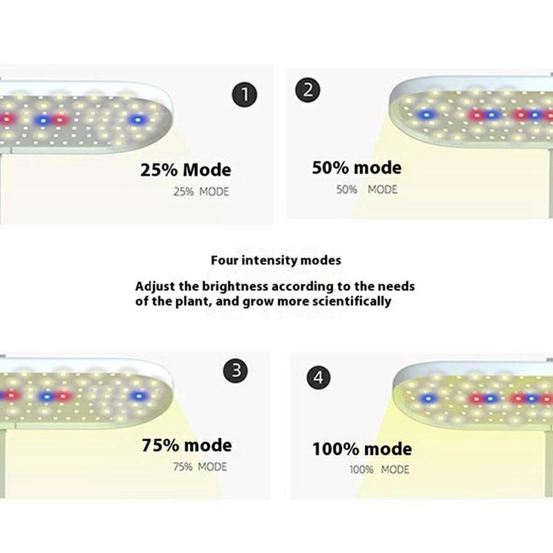 - 4 dimbare nivåer: Velg mellom 25 %, 50 %, 75 % eller 100 % lysstyrke for å imøtekomme de spesifikke lysbehovene til plantene dine i ulike vekstfaser.