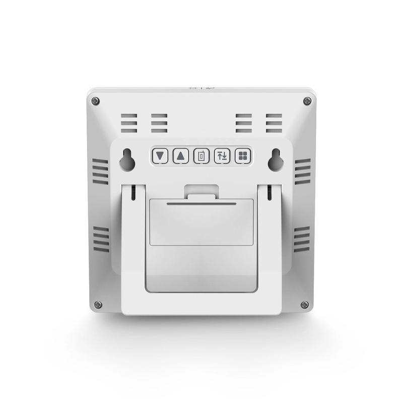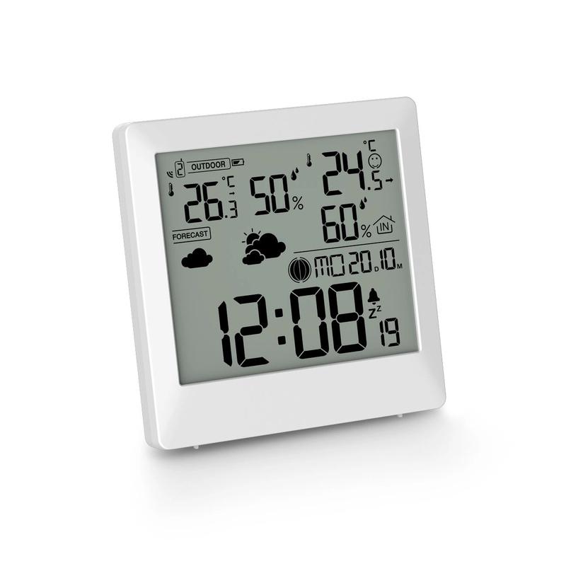 - Tydelig digital skjerm som viser temperatur, luftfuktighet, værmelding og månefaser