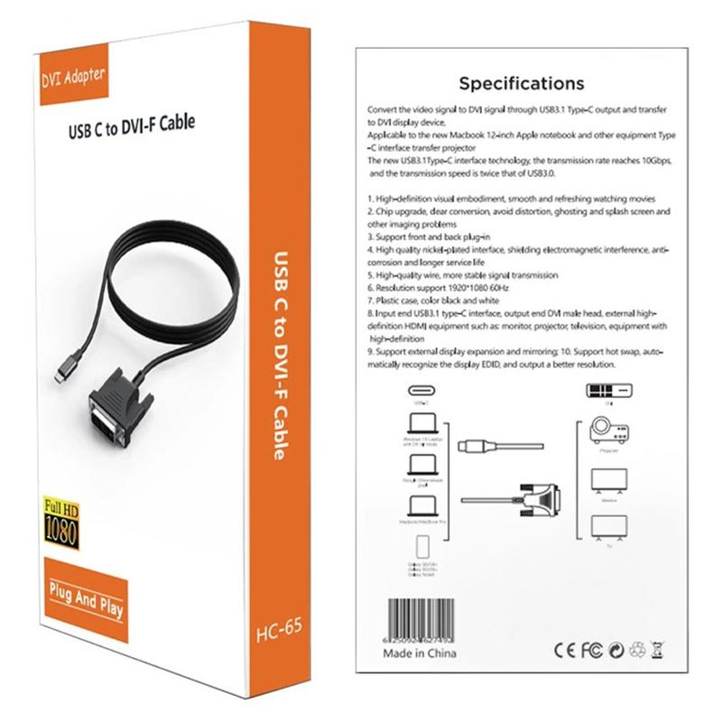 HC-65 USB-C til DVI-kabel 1.9m - 1080p Full HD-videoadapter for MacBook, bærbar PC, skjerm og projektor
