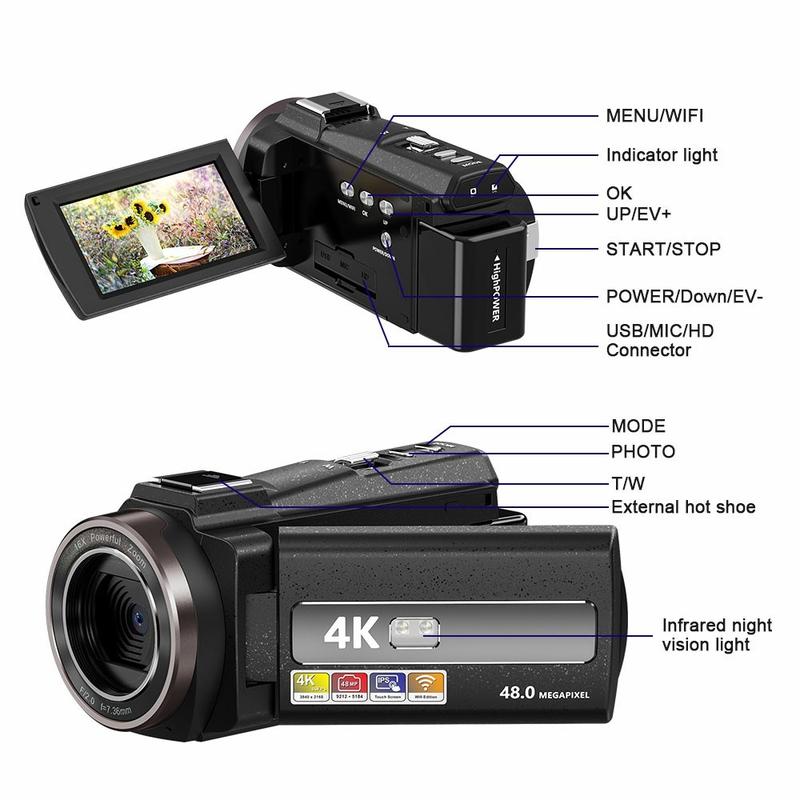 HDV-254KM 4K digitalt videokamera - 48 MP Ultra HD-videokamera med 3,0" berøringsskjerm, 16X zoom, IR-nattsyn og WiFi