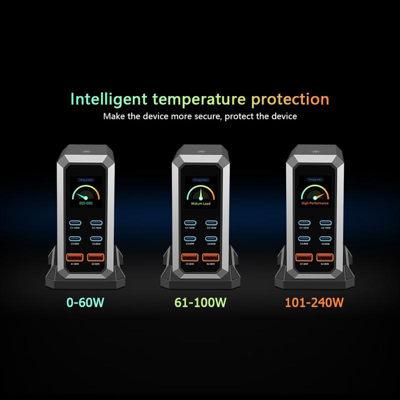 Dette er alt-i-ett-ladehuben du har ventet på. Den kombinerer ultrarask PD3.1-lading, avansert GaN-effektivitet og strømovervåking i sanntid, og sørger for at alle enheter får strøm raskt, trygt og intelligent - alt fra én kompakt stasjon.
