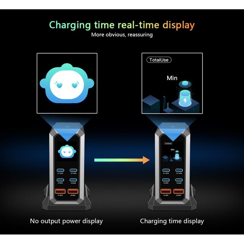 HHW 240W GaN 6-porters USB-C-ladestasjon - PD3.1 hurtigladehub med fargeskjerm i sanntid