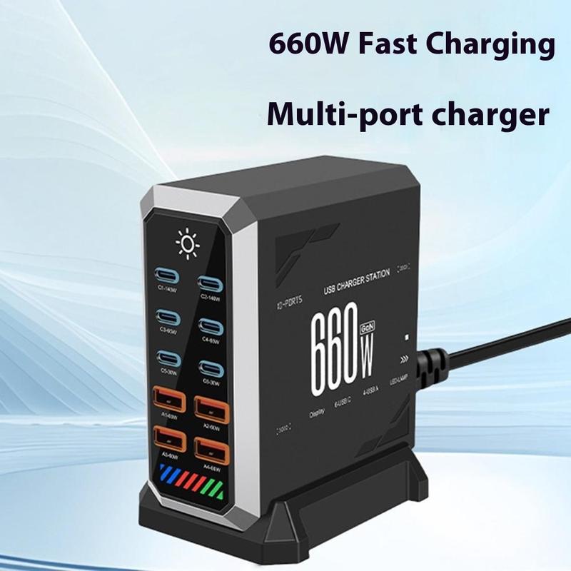 Få effektiv strøm til alle enhetene dine med HHW HW18 660W GaN multi-port bordlader, konstruert for høyytelseslading med banebrytende GaN-teknologi. Denne laderen kombinerer kraftig utgangseffekt, avanserte sikkerhetsfunksjoner og intelligent strømstyring, og er ideell for smarttelefoner, nettbrett, bærbare datamaskiner og andre USB-drevne dingser.