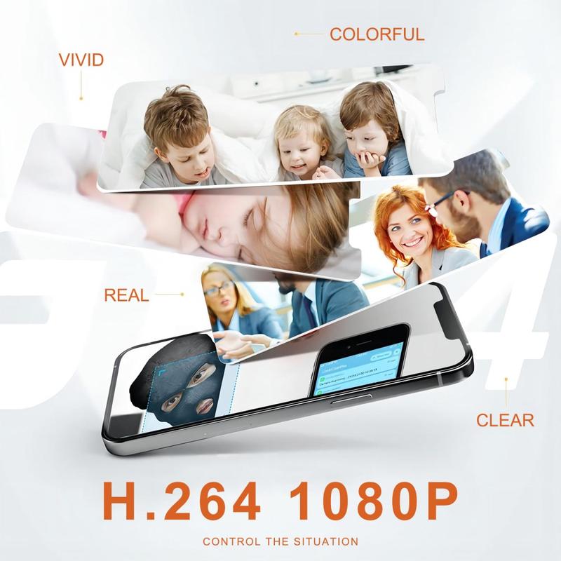Sløyfeopptak og automatisk lagring: Dette sikkerhetskameraet har en loop-opptaksfunksjon. Videofilen lagres automatisk hvert 5. minutt. Når minnekortet er fullt, vil den nyeste filen overskrive den gamle. Du vil aldri gå glipp av viktige ting du vil vite (Merk: Vi anbefaler at du organiserer filene i tide for å lagre viktige videofiler).