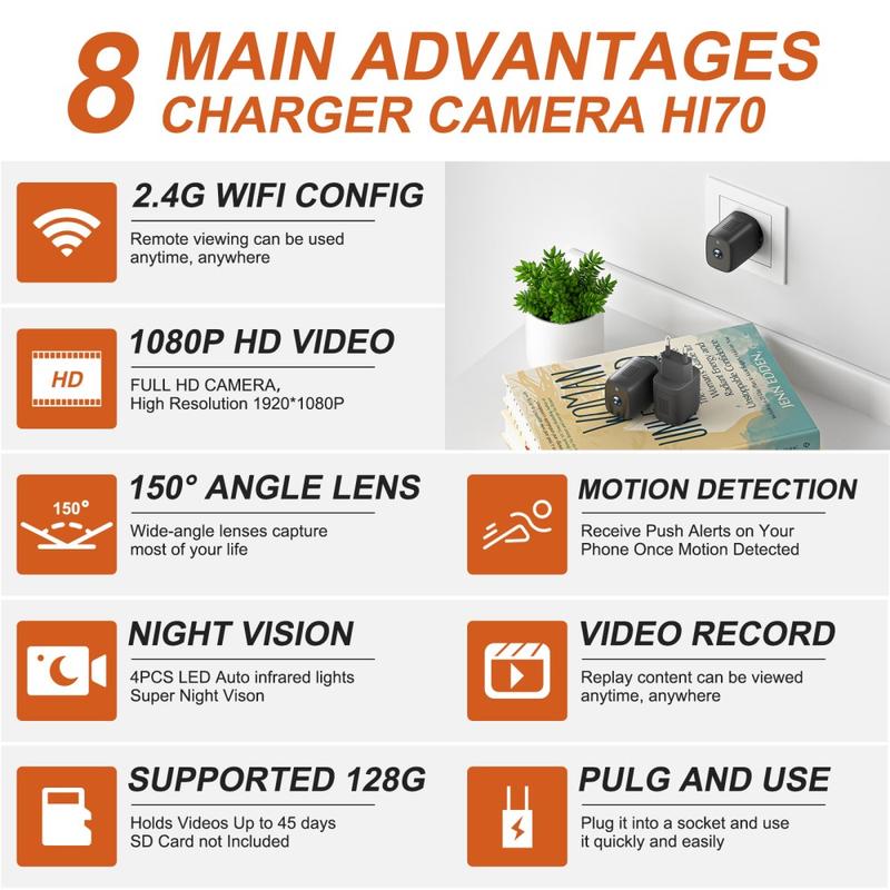 HI70 Vegglader form nattsyn bevegelsesdeteksjon WiFi fjernkontroll minikamera