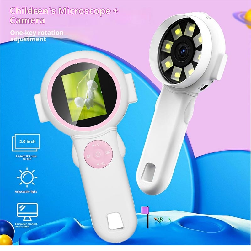 HM020J digitalt mikroskop for barn har to spennende moduser i én og samme enhet. Med ett enkelt tastetrykk kan du veksle mellom mikroskopmodus for nærstudier og kameramodus for å ta bilder - perfekt for unge oppdagelsesreisende, studenter og nysgjerrige sjeler.