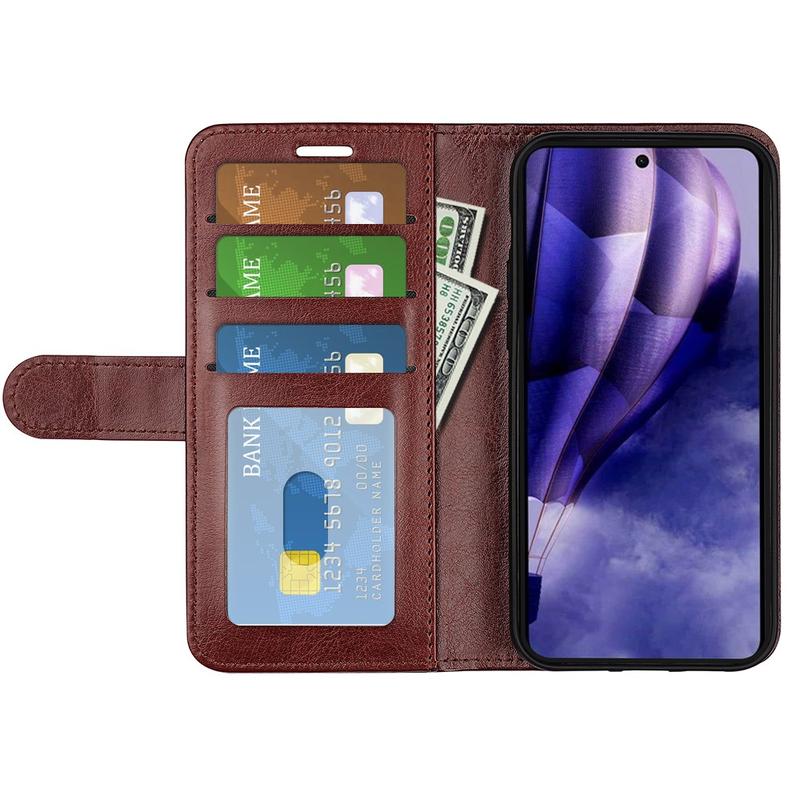 Dette lommeboketuiet er designet for bekvemmelighet, og har tre kortplasser og en sidelomme for å ta med kort og penger når du er på farten. Det sammenleggbare stativet gjør det enkelt å se på, noe som gjør det perfekt for både jobb og fritid. Den enkle åpningslåsen med to magnetiske lukkemekanismer på siden sørger for at eiendelene dine er godt festet.