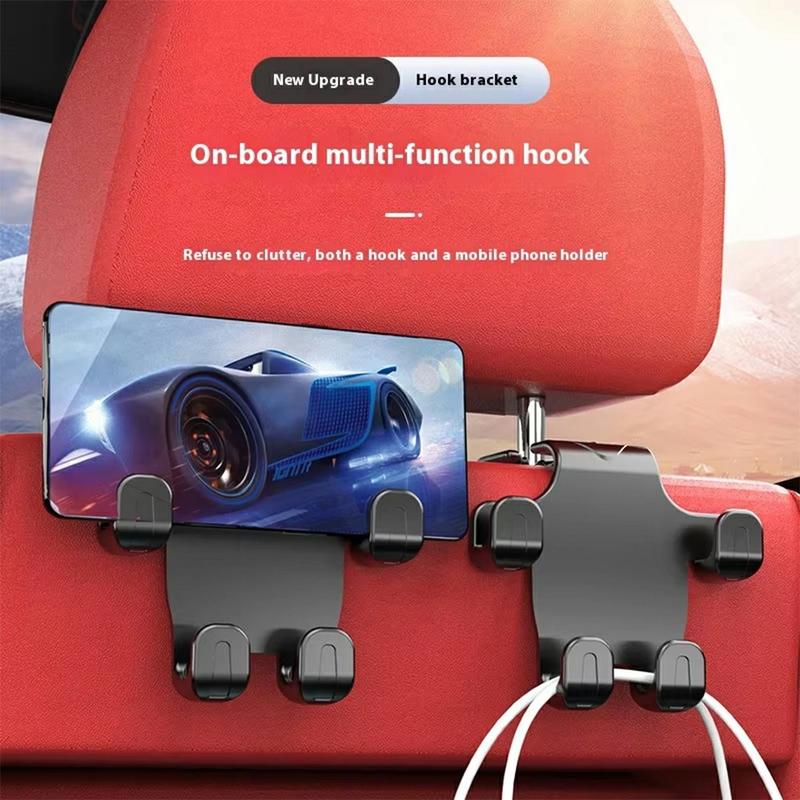 Hodestøttehake med telefonholder til bilsete - multifunksjonell oppbevaringshake til baksetet