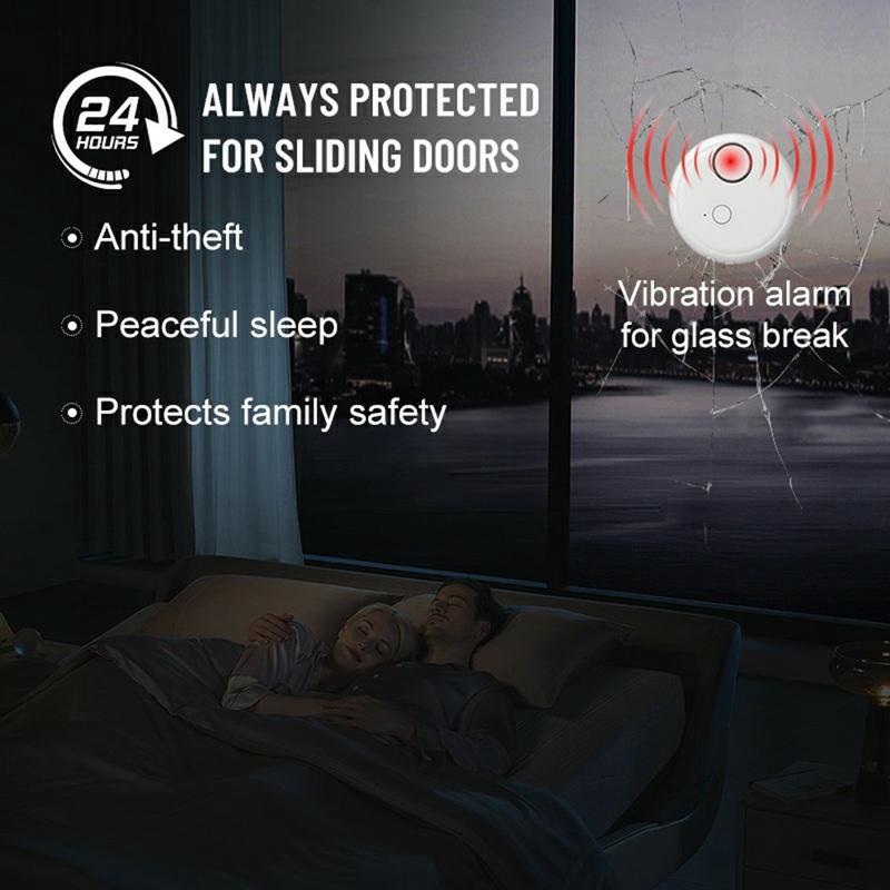 Høysensitiv dør-/vindusalarm - 130dB vibrasjonssensor glassknusningsdetektor med fjernkontroll