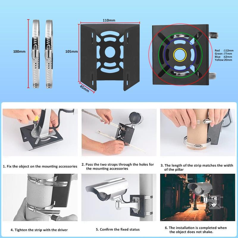 - Monteringsbrakett med stolpeklemme for overvåkningskameraer