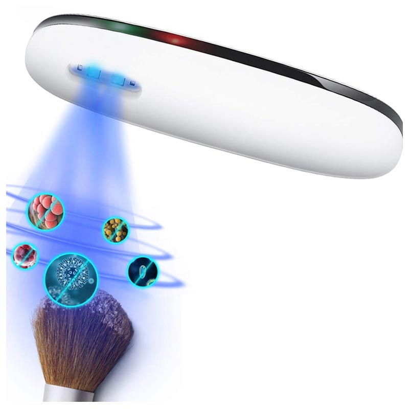 Denne håndholdte og bærbare sterilisatoren bruker UV (ultrafiolett) lys for å drepe opptil 99.9% av bakteriene. Den er designet med to UV-LED lys, med 120 graders steriliseringsområde.