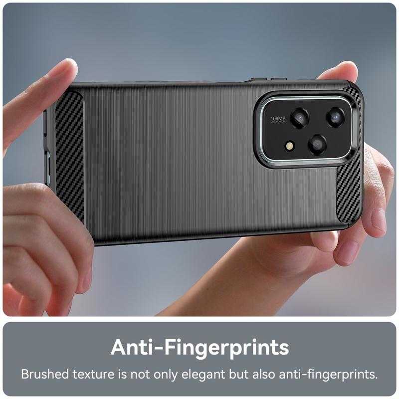 Det børstede TPU-dekselet beskytter din Honor 200 Lite tilstrekkelig, samtidig som det gir den en flott stil, takket være karbonfibermønsteret på baksiden. Dekselet sikrer også overoppheting når du bruker Honor 200 Lite, med sitt varmespredningsdesign.
