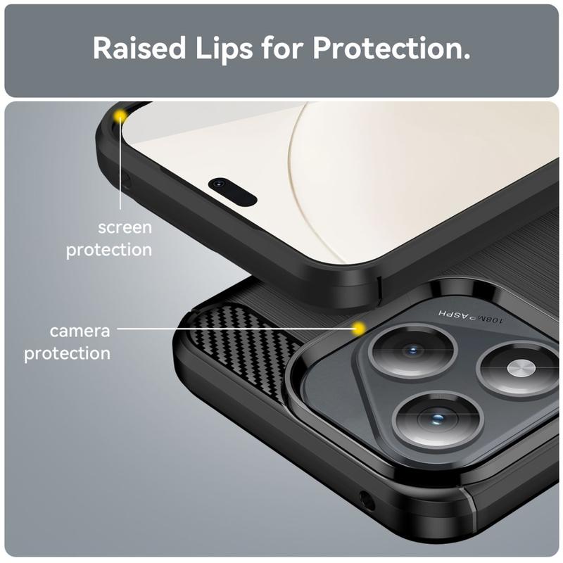 Gi din Honor 400 Lite, Honor X70i den stilige beskyttelsen den fortjener med dette børstede dekselet med karbonfiberstruktur. Det kombinerer en elegant, børstet overflate med en robust, beskyttende design, og beskytter enheten din mot daglige støt og riper samtidig som det gir et komfortabelt grep.